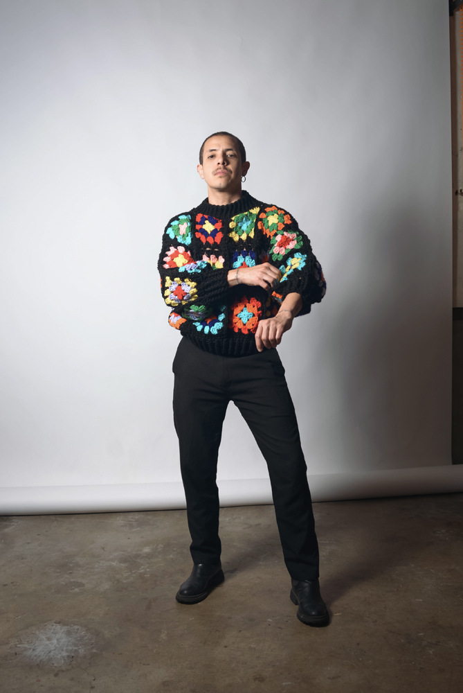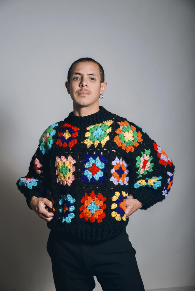 Bomber de lana cerrada cuadrados negro