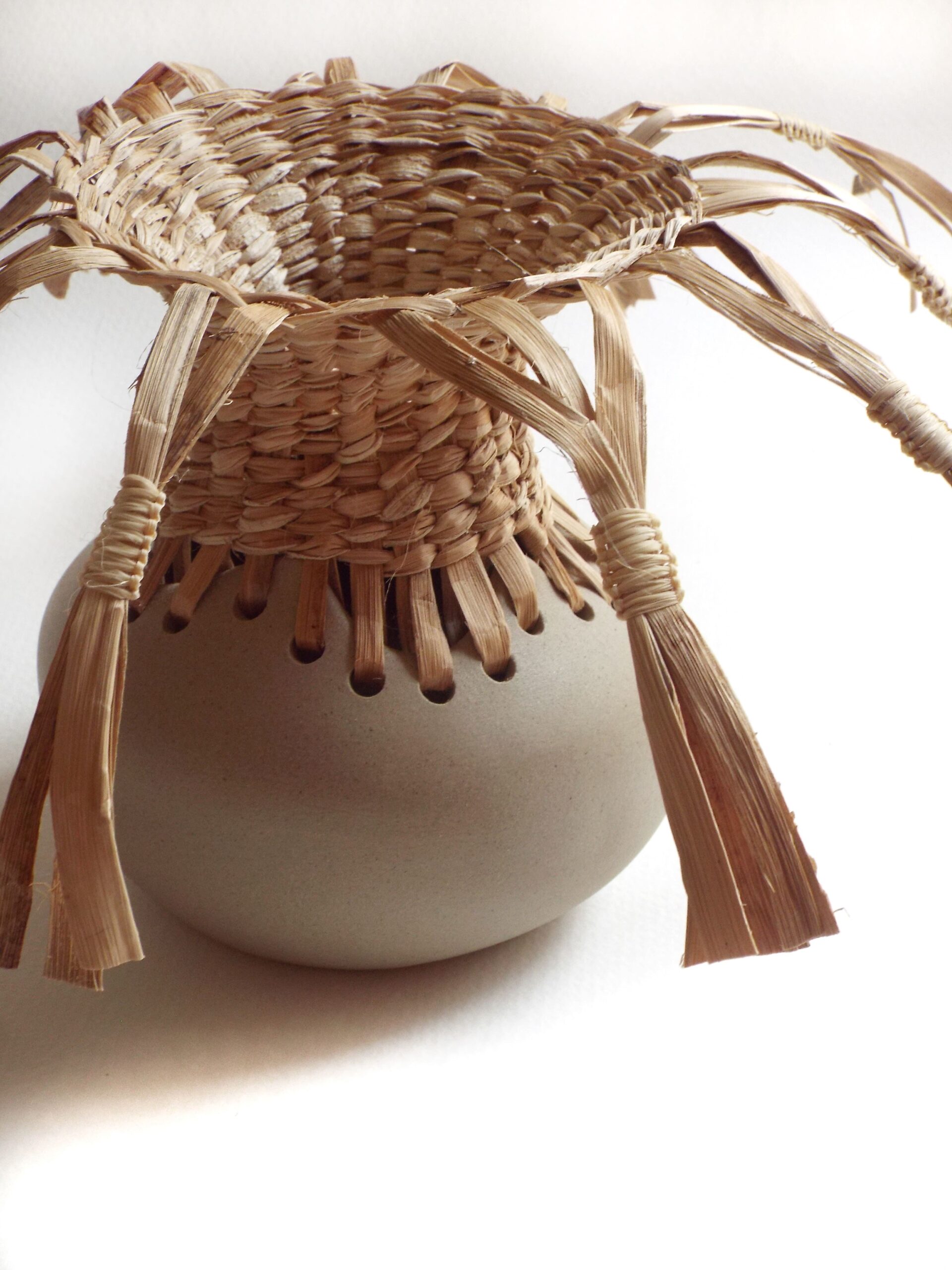 Sentir la frecuencia de la Tierra a través de los materiales que brotan de ella y se cocinan al ritmo poético de la naturaleza. Cada textura, cada partícula, cada trama nos transporta a un viaje sensorial donde la materia se transforma en vínculo vivo entre la Tierra y quienes la habitamos, en una danza continua que entrelaza este tejido vital. Estas vasijas brotan del fuego interno y se moldean bajo el calor del universo, flameando esta relación simbiótica que nos une, nos sostiene y nos despierta a la conciencia de nuestro lugar en el mundo